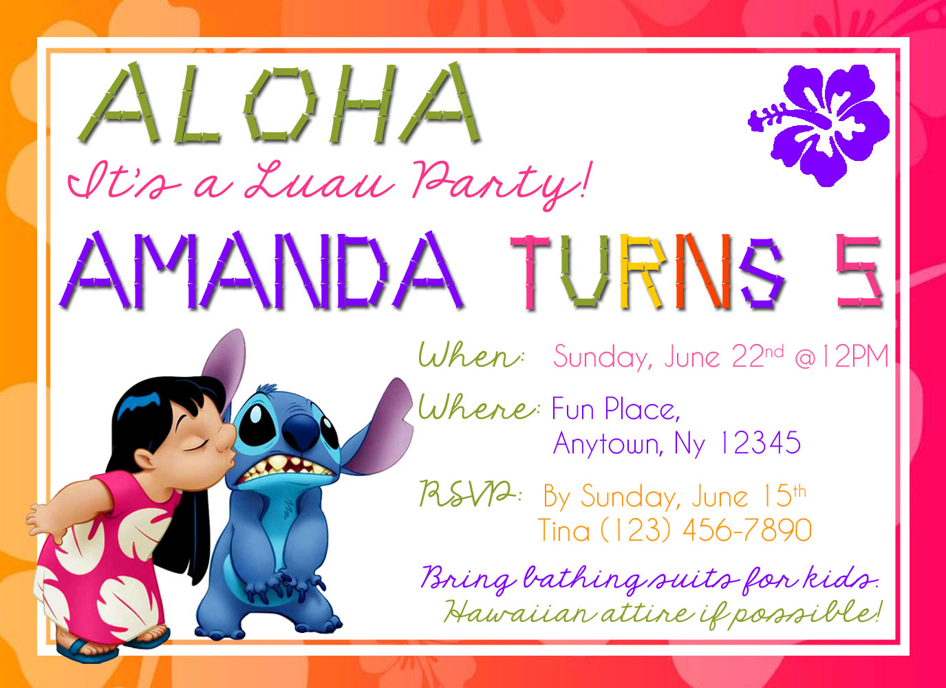 Luau/Lilo and Stitch Birthday Invites Posted on August 17, 2015August 17, 2015 by dakdilldesigns Having a Luau?… Invite Lilo and Stitch along! Invitation can be found on etsy. Share this: Click to share on X (Opens in new window) X Click to share on Facebook (Opens in new window) Facebook Like Loading...