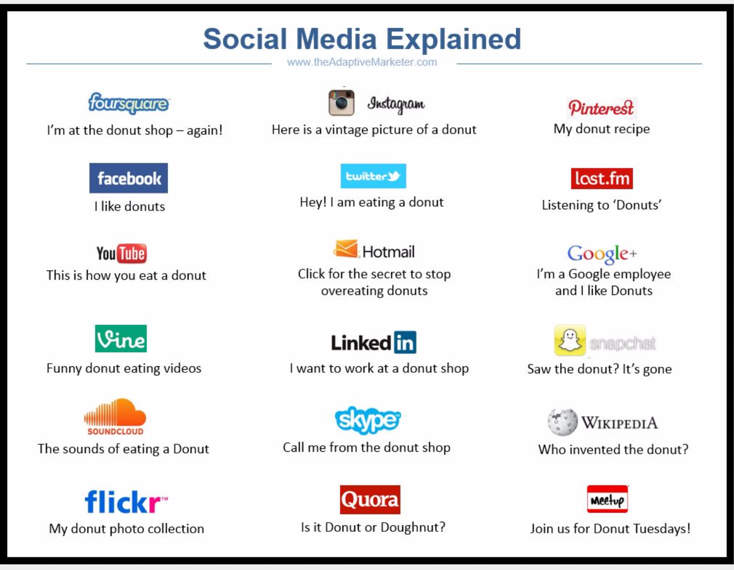 It Only Takes a Donut to Explain Social Media Posted on February 3, 2016March 19, 2016 by dakdilldesigns I want to thank the donut involved to help explain the social media apps that are out there and what they do. 👀❤🍩 Share this: Click to share on X (Opens in new window) X Click to share on Facebook (Opens in new window) Facebook Like Loading...